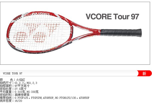??? 網(wǎng)上的很多網(wǎng)店都是在說是這款YONEX VCORE TOUR 97網(wǎng)球拍。可是來之尤尼克斯的消息,瓦林卡用的網(wǎng)球拍是全新款,還未上市。那么到底瓦林卡用的什么網(wǎng)球拍呢?